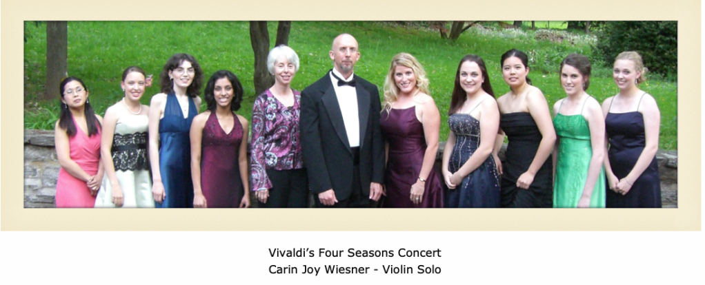 Carin has toured with Andrea Bocelli and the Hartford Symphony Orchestra and has played locally with Michael Bolton, The Irish Tenors, and Rosemary Clooney. She has performed solos with area orchestras and regularly at area musical theaters. Her talent has been heard throughout the region, including a New York City performance with internationally acclaimed guitarist Daniel Salazar, Jr, along with recording all the string tracks for his world-wide released CD.